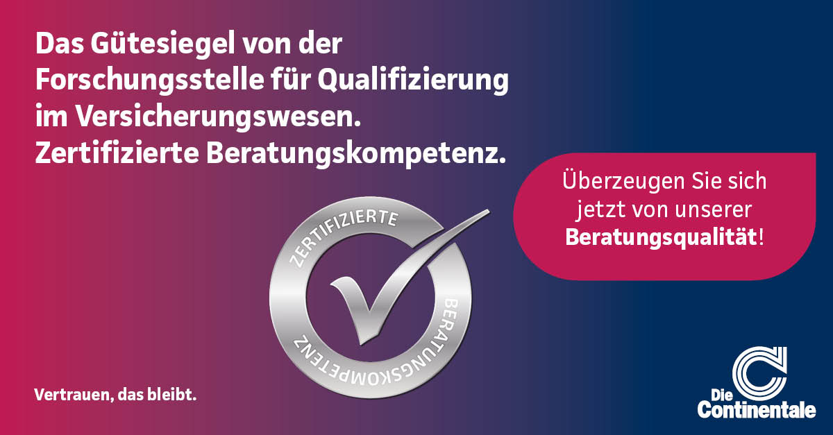 Bereits nach zwei jahren Tätigkeit bei der Continentale Versicherung wurde der Geschäftsstelle Stolze & Kretzschmar das Gütesiegel für „Zertifizierte Beratungskompetenz“ verliehen. Experten haben dem Versicherungsbüro damit geprüftes Fachwissen und nachgewiesene Beratungskompetenz bestätigt.