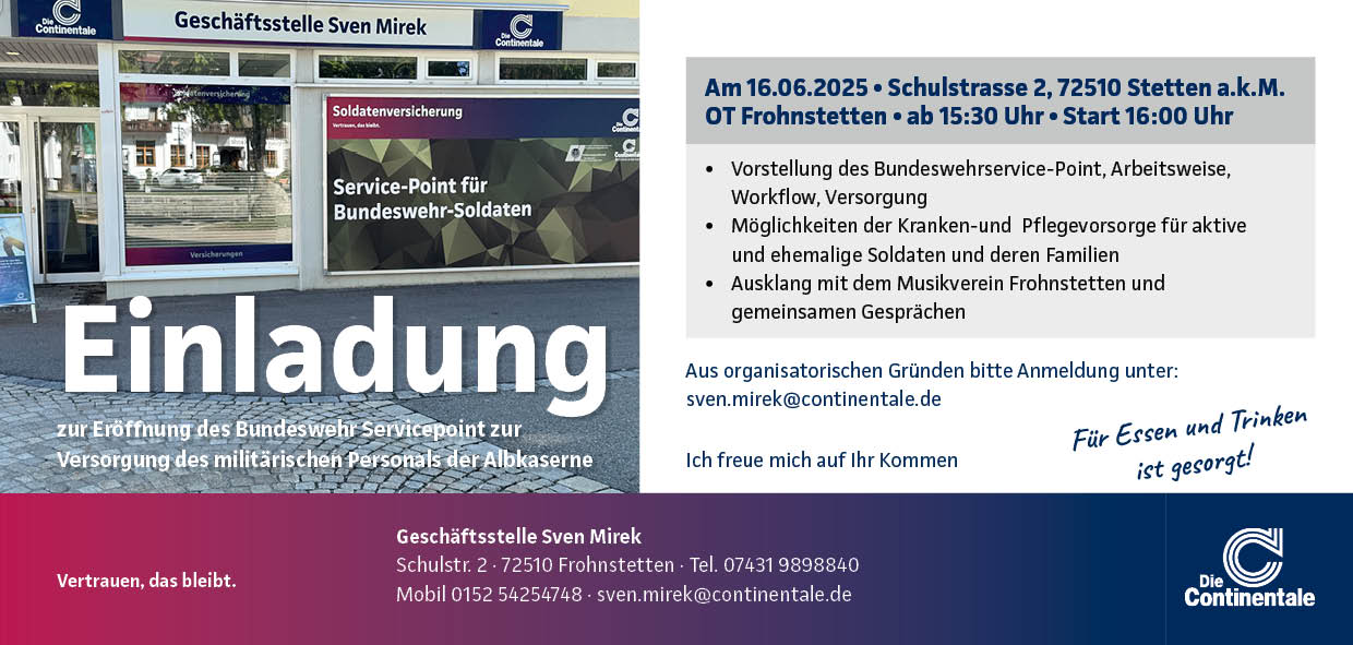 Als Bundeswehr-Experte der Continentale beraten wir Soldaten und ihre Familien zu allen von der Continentale angebotenen Versicherungen.