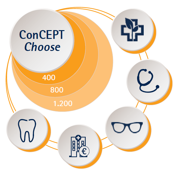 - 3 Tarife zur stationären Ergänzung –vom Schutz infolge von Unfällen bis hin zum umfassenden „Erste Klasse-Schutz“.