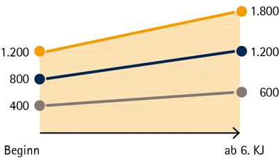 Die vereinbarte Leistungshöhe (600 € Budget) erhöht sich, wenn das Versicherungsverhältnis nach diesem Tarif ein jeweils volles Kalenderjahr bestand,