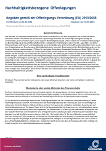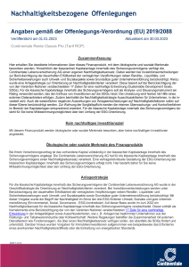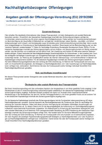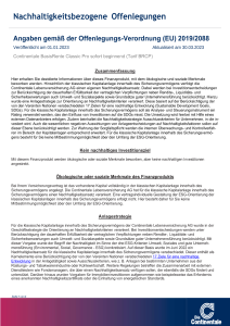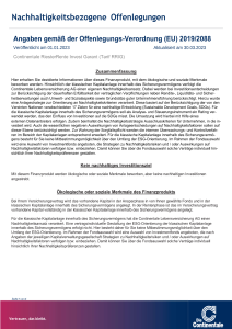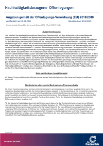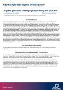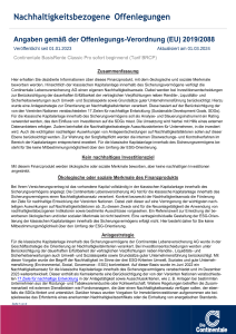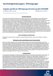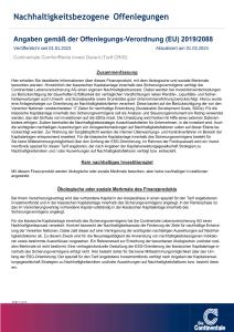 Folgende Angaben der Continentale Lebensversicherung AG dienen der Offenlegung von Informationen gemäß den gesetzlichen Anforderungen der Offenlegungs-Verordnung 2019/2088 und haben den Stand 01.09.2025.