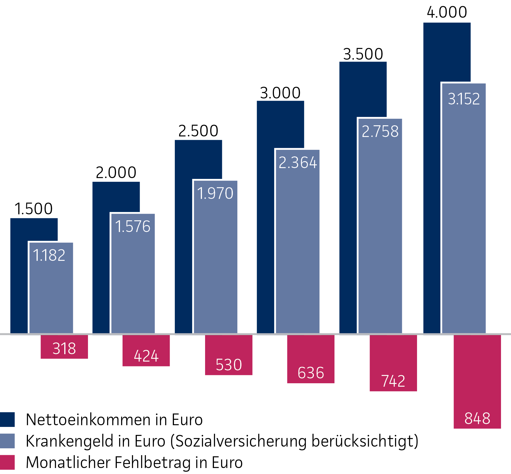 - Noch gravierender ist der Verlust, wenn Sie monatlich mehr als 5.512,50 Euro brutto verdienen. Dann erhalten Sie maximal 3.152 Euro Krankengeld (Sozialversicherung bereits berücksichtigt) von Ihrer Krankenkasse.