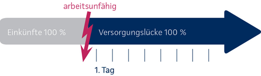 Dazu können Sie ihren Verdienstausfall schon ab dem 4. Tag ihrer Arbeitsunfähigkeit bei uns absichern. Selbstverständlich sind auch spätere und gestaffelte Leistungsbeginne möglich.