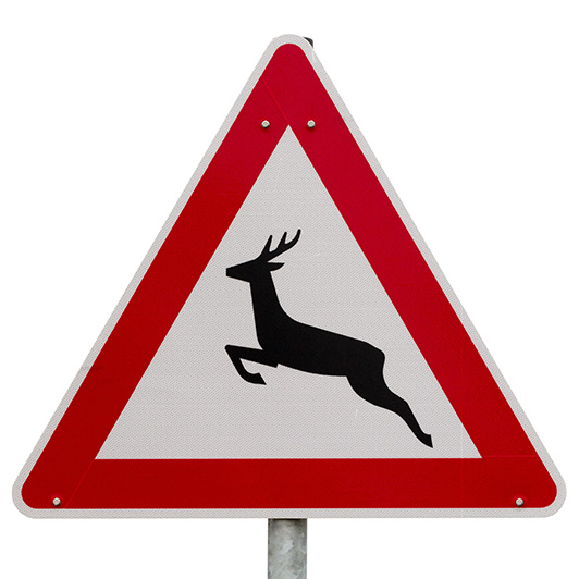 Warnschilder zum Wildwechsel sollten beachtet werden. Es gibt über 250.000 Wildunfälle im Jahr.