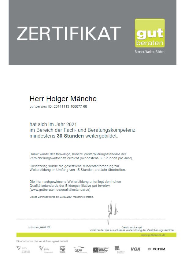 "Gut beraten" Zertifikat Continentale: Holger Mänche