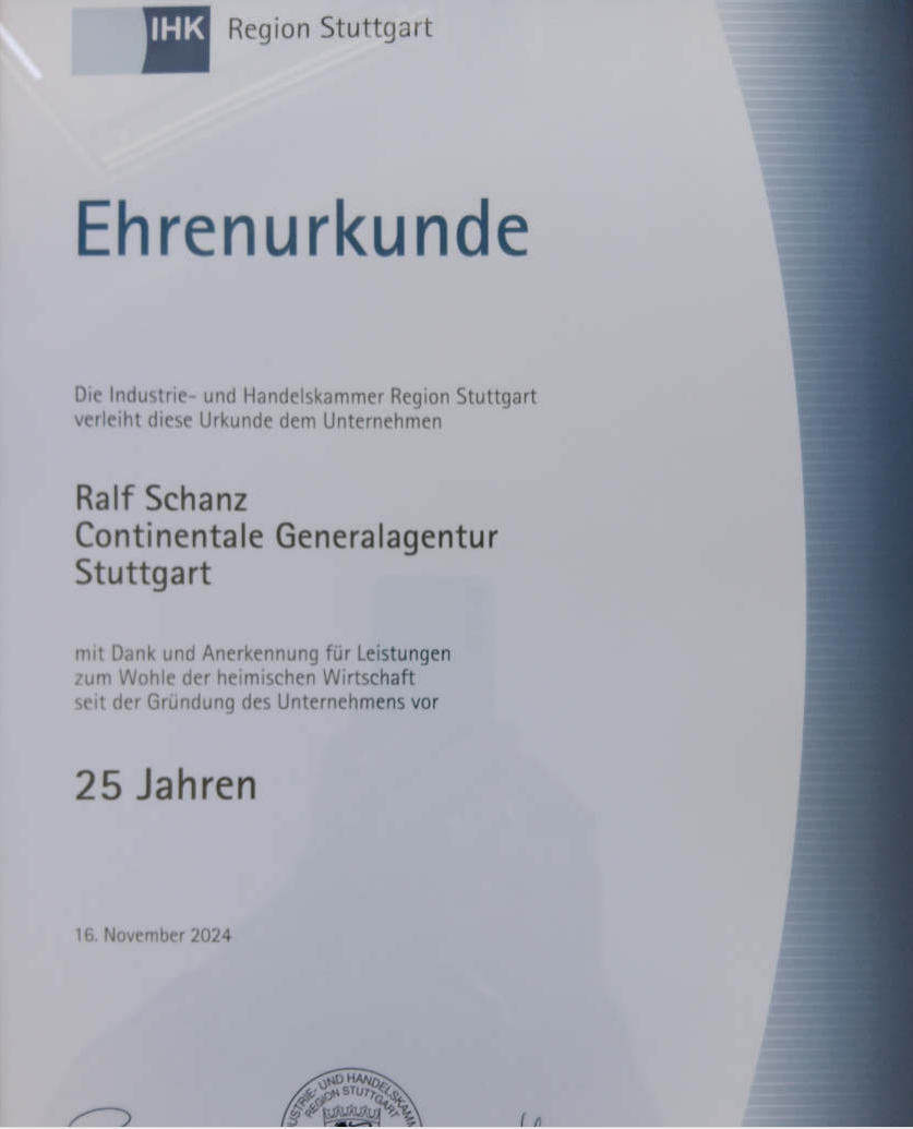 IHK würdigt 25 Jahre Selbstständigkeit als Versicherungsagentur