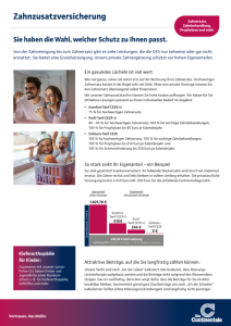- Individueller Schutz: Sie entscheiden, welcher Zahn-Schutz zu Ihnen passt. – Sie haben die Wahl vom besonders günstige Einsteiger-Tarif ohne Gesundheitsprüfung bis hin zum 100 % Exklusiv-Schutz bei Zahnersatz und Co.